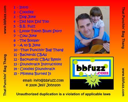 "That Punchin' Bag Thang" is a CD filled with all kinds of flavors for kids and their parents. The title cut "That Punchin' Bag Thang" has the kids singing high, low, fast, slow, loud, soft, long, and short as they discover the "secret" to Jeff's singing success. You'll also love the "Loose Tooth Blues" written especially for those kids who have lived to tell about it. Oh, and don't forget to sing the alphabet. . . backwards in "Backerds CBAs". With many other flavors to choose from you will not want to pass up the hours of fun and entertainment packed into this one CD.